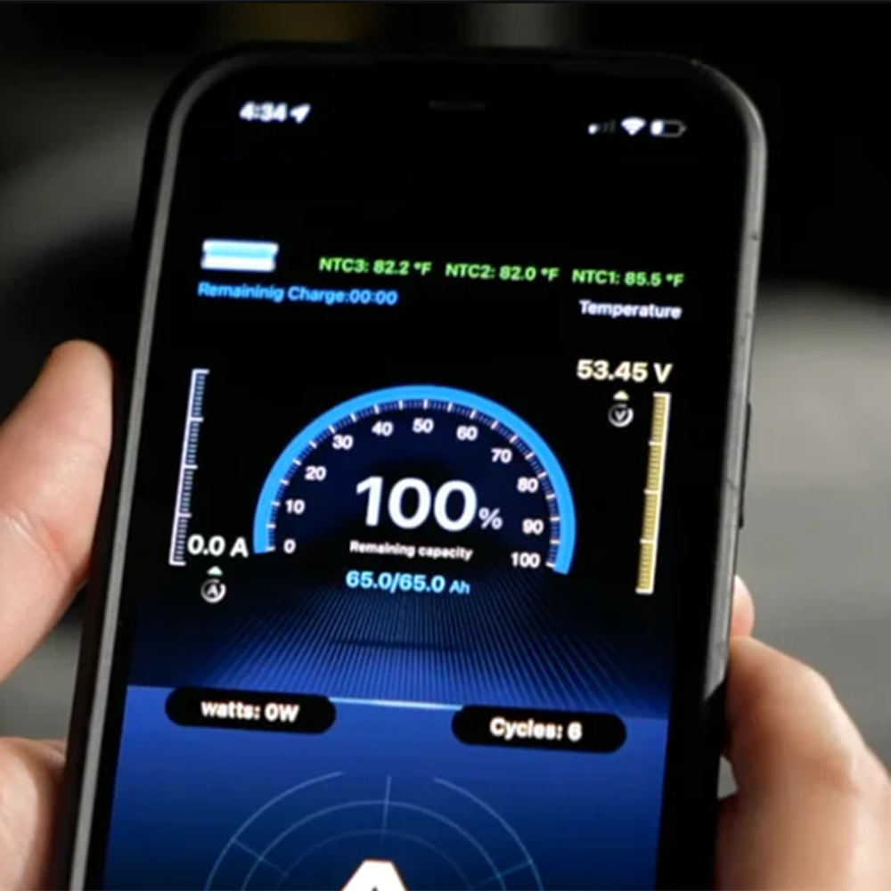 • Bluetooth technology and a user-friendly mobile app: Gain easy access to State-of-Charge, cell voltage, cycles and much more. Includes a robust OEM dashboard to allow off-site maintenance and troubleshooting, ensuring efficient and timely fixes for optimal customer experience.