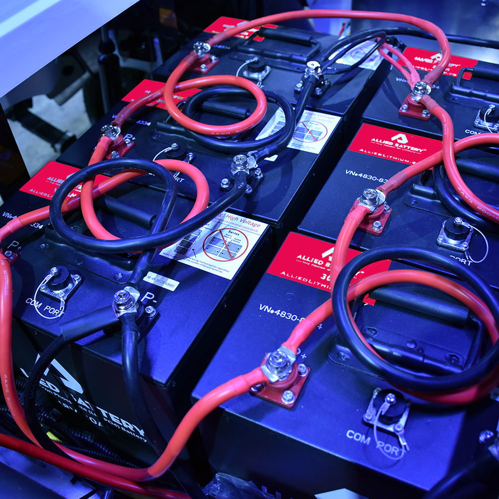 Allied Lithium Batteries weigh 28lbs and require much fewer batteries to run the cart efficiently. This results in an average weight reduction of 250+ lbs!